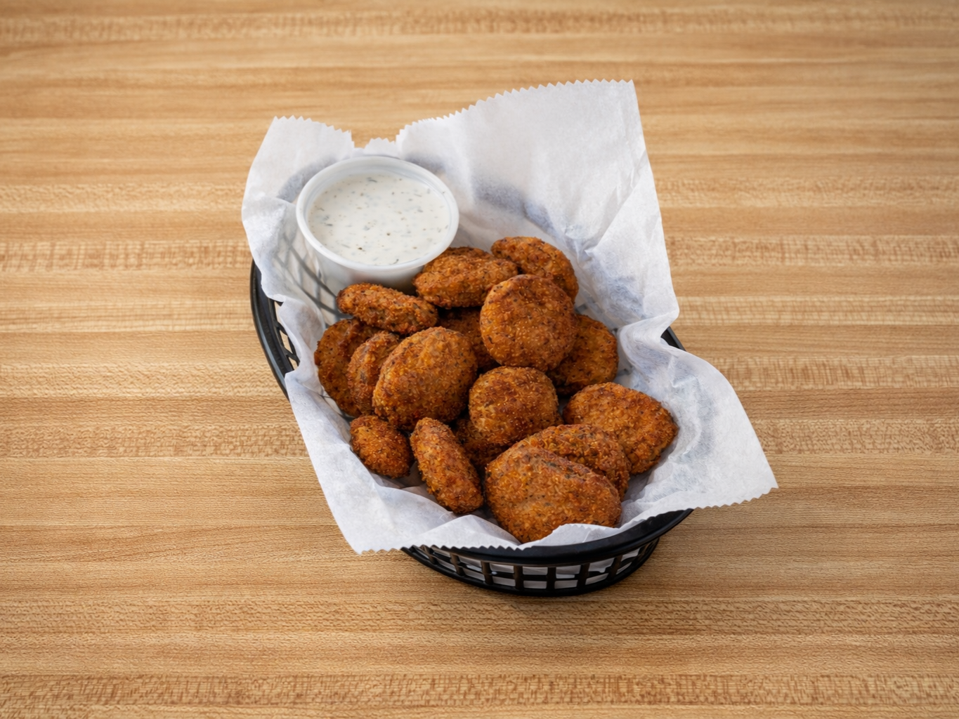 Crispy battered pickle chips fried golden and served with our signature sauce.