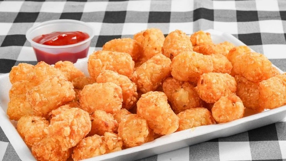 A heaping pile of hot, crunchy tater tots with a delightful fluffy center.