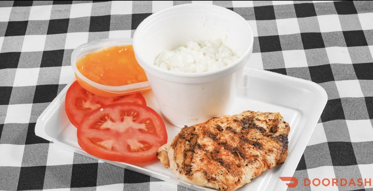 1/3 pound burger or grilled chicken breast, cottage cheese and side salad. Make it a Mega patty $2.00