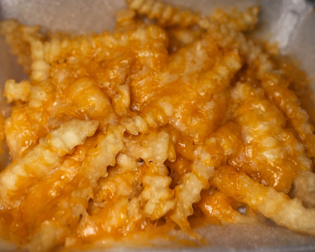 Golden fries smothered in cheese served with a side of our homemade ranch.